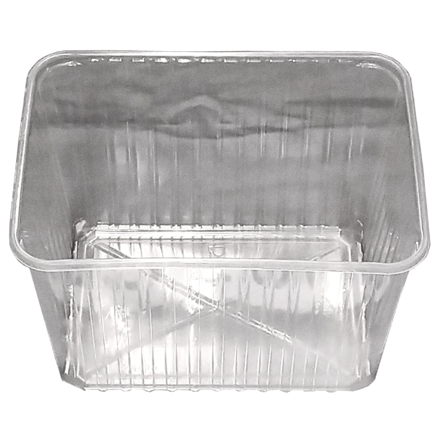 Materiál polypropylen (PP). Objem 2000 ml. Šířka 18,6 cm. Hloubka 13,3 cm. Výška 12,2 cm. Barva transparentní. Balení 50 ks. Množství 400 ks.
